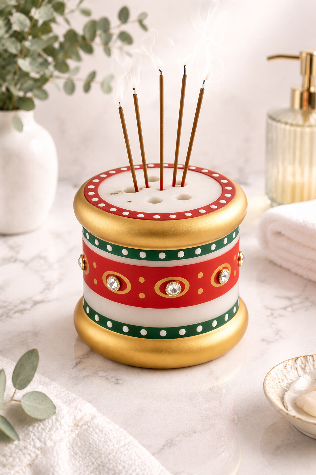 Top Categories Agarbatti Stand Holder Bathroom Accessories Home Decor Marble Diya Pooja Chopra Candle Stand Holder Pink Marble Mortar Timeless Marble Artistry — Where Tradition Meets Luxury Explore beautifully handcrafted marble decor and gifts, created by skilled artisans using age-old techniques, bringing elegance and heritage into your home. Bathroom Accessories Bathroom set Soap Holder Soap Stand Soap Stand Puja Article Marble Diya Singhasan White Marble Diya Agarbatti Stand